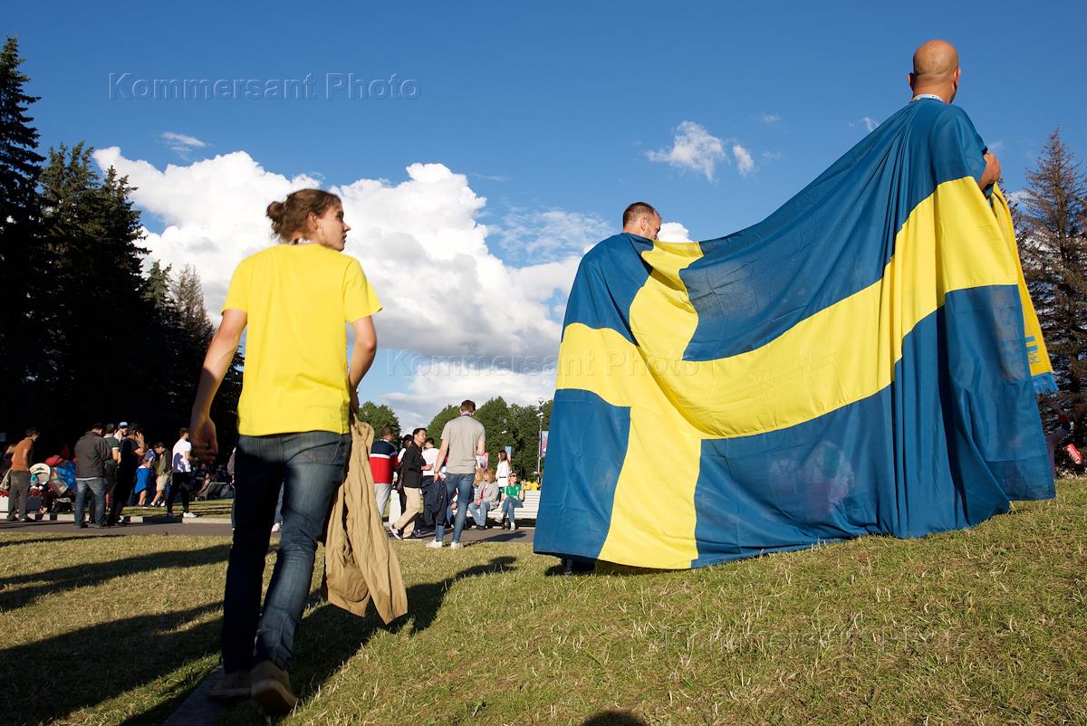 Чемпионат мира по футболу в России FIFA 2018. Болельщики после матча Швеция-Швейцария проходивший в Санкт-Петербурге.