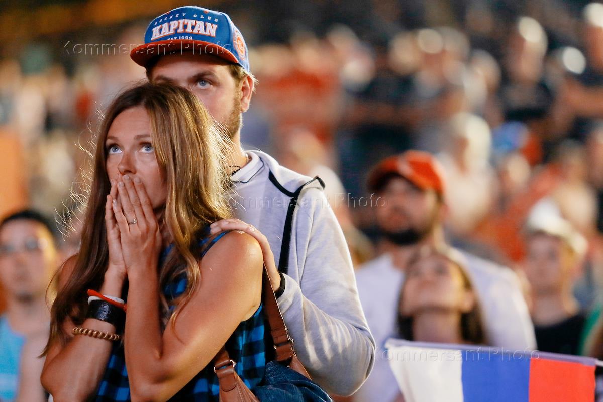Чемпионат мира по футболу в России FIFA 2018. Болельщики во время просмотра матча Россия - Хорватия в Волгограде.
