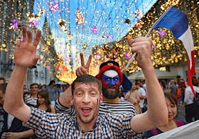 Чемпионат мира по футболу в России FIFA 2018. Финал. Болельщики на Никольской улице.