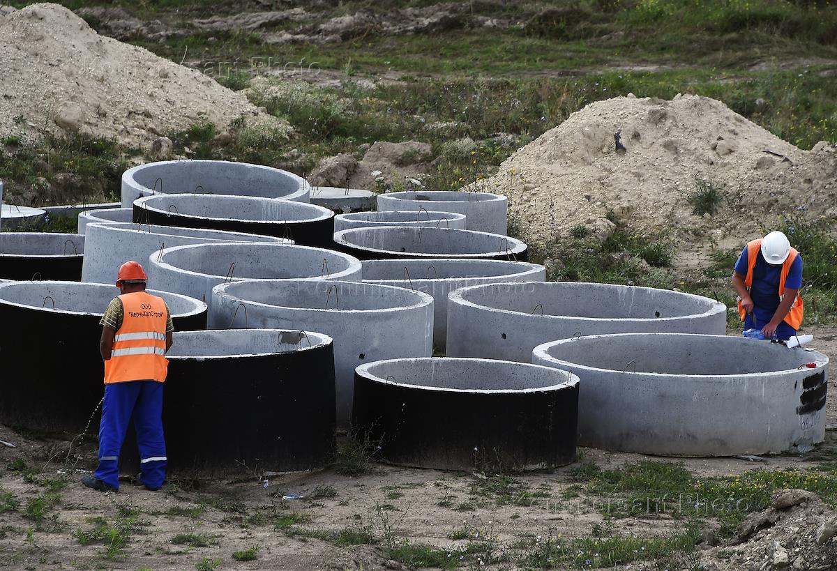 Жанровая фотография. Рабочие во время строительства водопровода для снабжения жителей питьевой…
