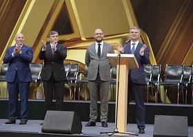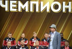 Церемония награждения футбольного клуба (ФК) "Локомотив" золотыми медалями чемпионата России сезона…