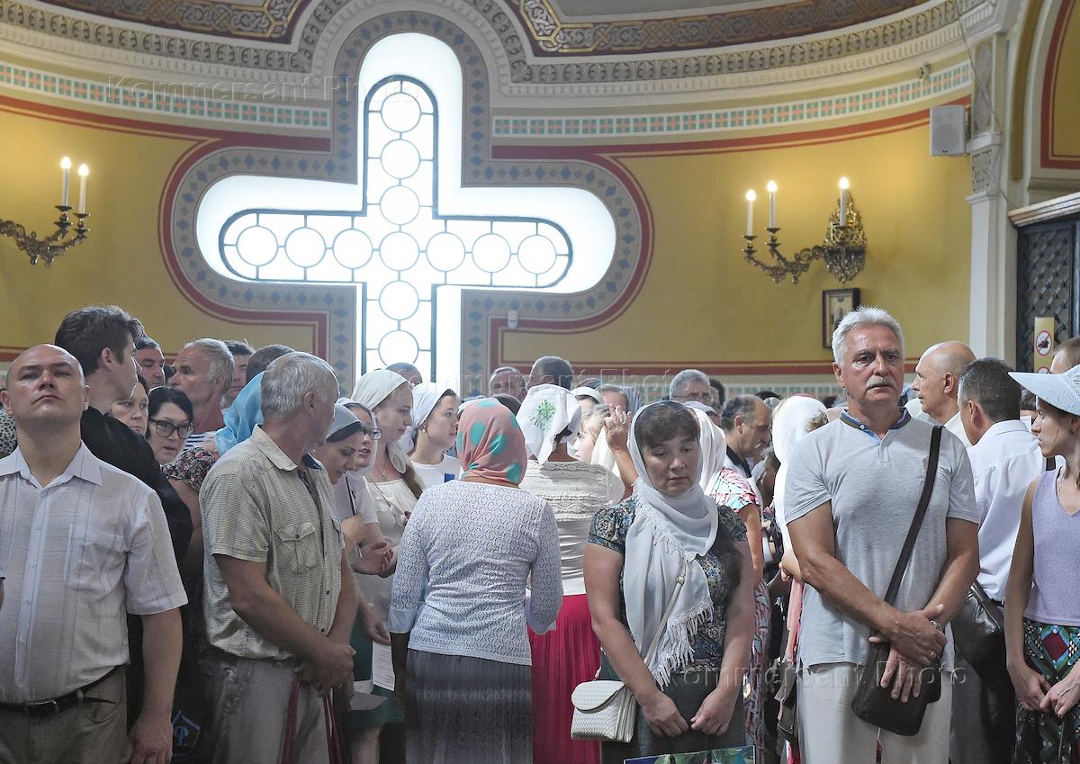 Празднование 1030-летия крещения Руси в Херсонесе. Верующие в Владимирском кафедральном соборе.