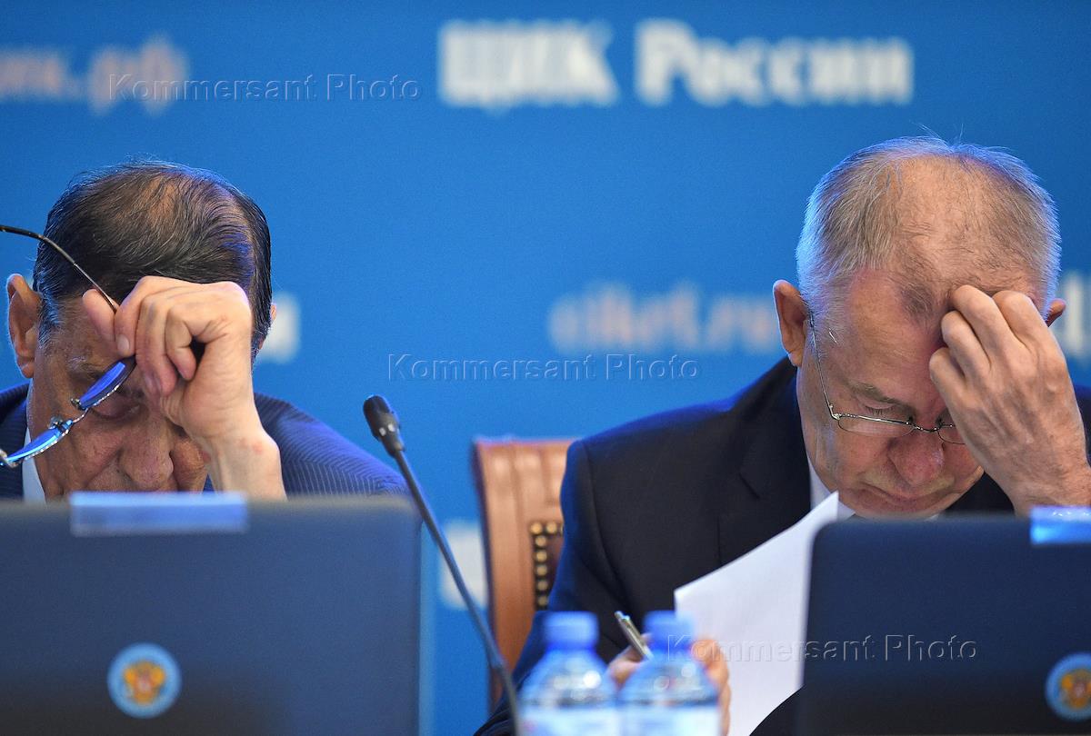 Заседание Центральной избирательной комиссии (ЦИК) России. Члены ЦИК России Борис Эбзеев (слева) и…