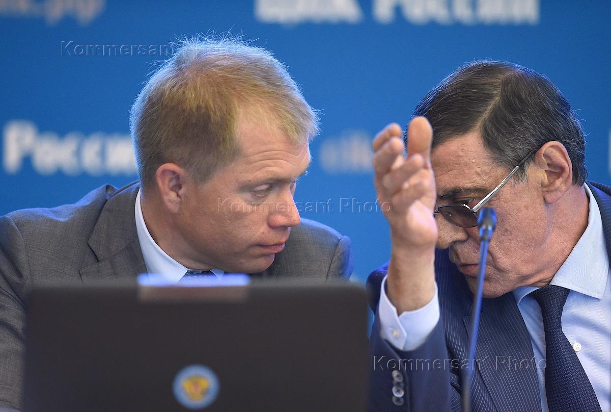 Заседание Центральной избирательной комиссии (ЦИК) России. Члены ЦИК России Антон Лопатин (слева) и…