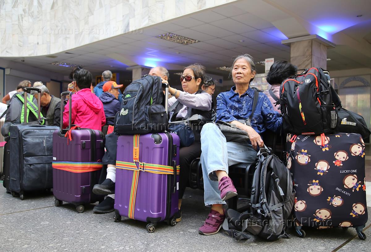 Жанровая фотография. Пассажиры из Азии в зале ожидания Морского порта.