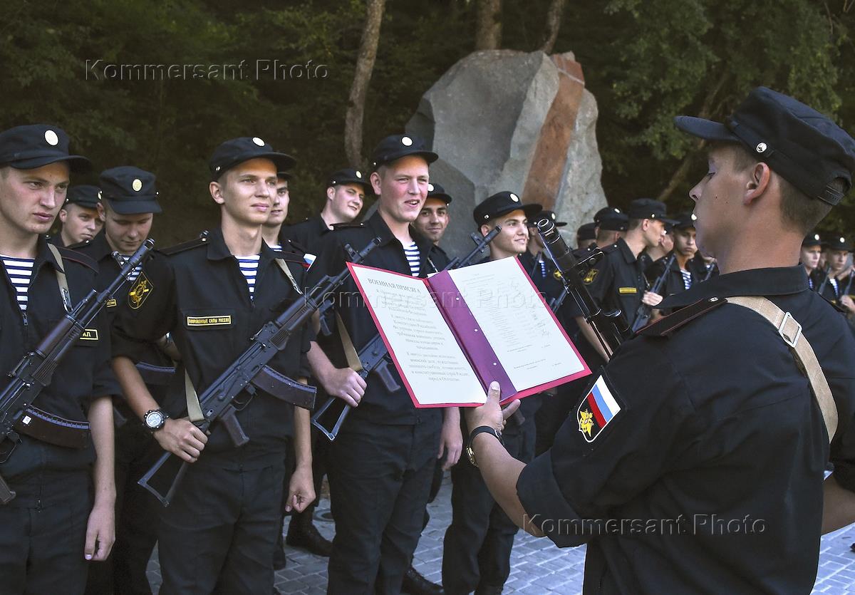 Церемония принятия воинской присяги военнослужащими береговой обороны Чернморского флота.