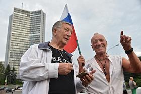 Предприниматель, политик Константин Боровой (слева) на акции в память о событиях августа 1991 года…