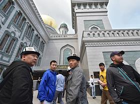 Праздник жертвоприношения Курбан-Байрам в Московской Соборной мечети. Верующие у мечети.