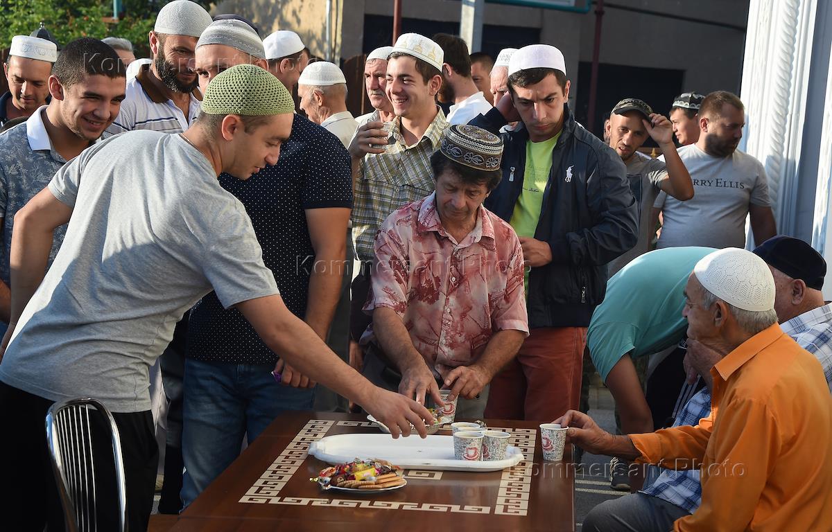 Праздник жертвоприношения Курбан-Байрам. Верующие во время намаза.