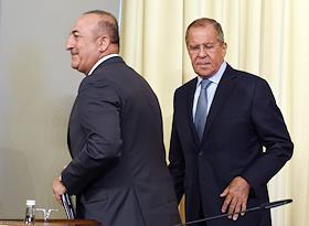 Министр иностранных дел России Сергей Лавров (справа) и министр иностранных дел Турции Мевлют…