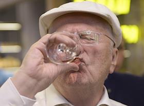 Жанровая фотография. Центральный рынок столицы. Дегустация красное вина.
