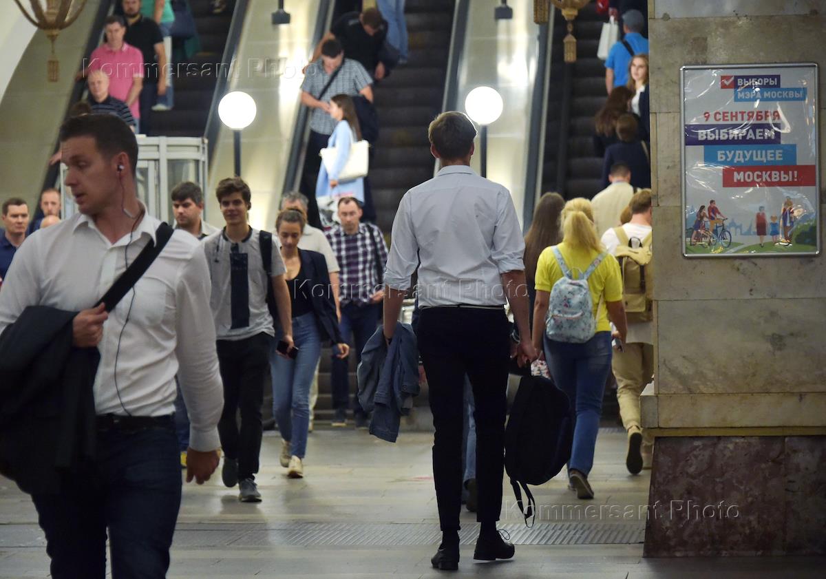 Предвыборная кампания по выборам мэра Москвы. Информационный плакат о дате выборов в метро.