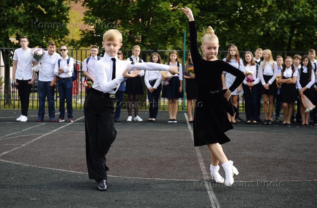 Ученики на торжественной линейке, посвященной началу учебного года.
