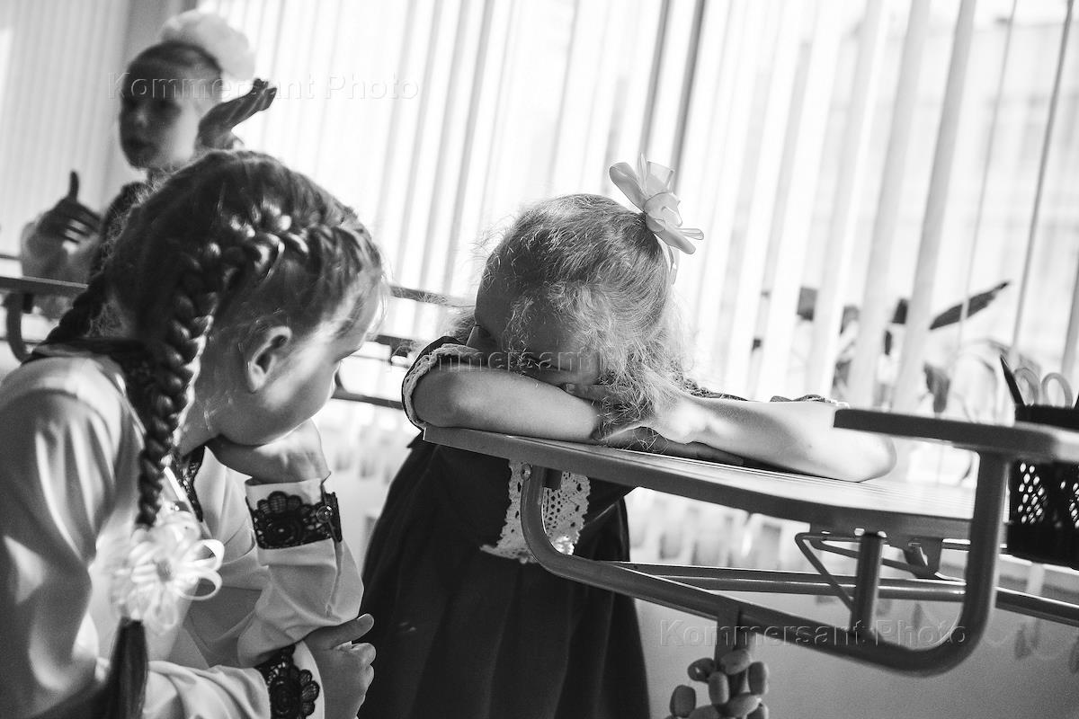 Праздник "День знаний" посвященный началу нового учебного года. Ученицы у доски в классе в Земской…