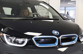Жанровая фотография. Стенд "Уголок покупателя" в первом мультибрендовом салоне электромобилей АВС…