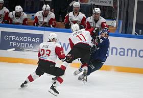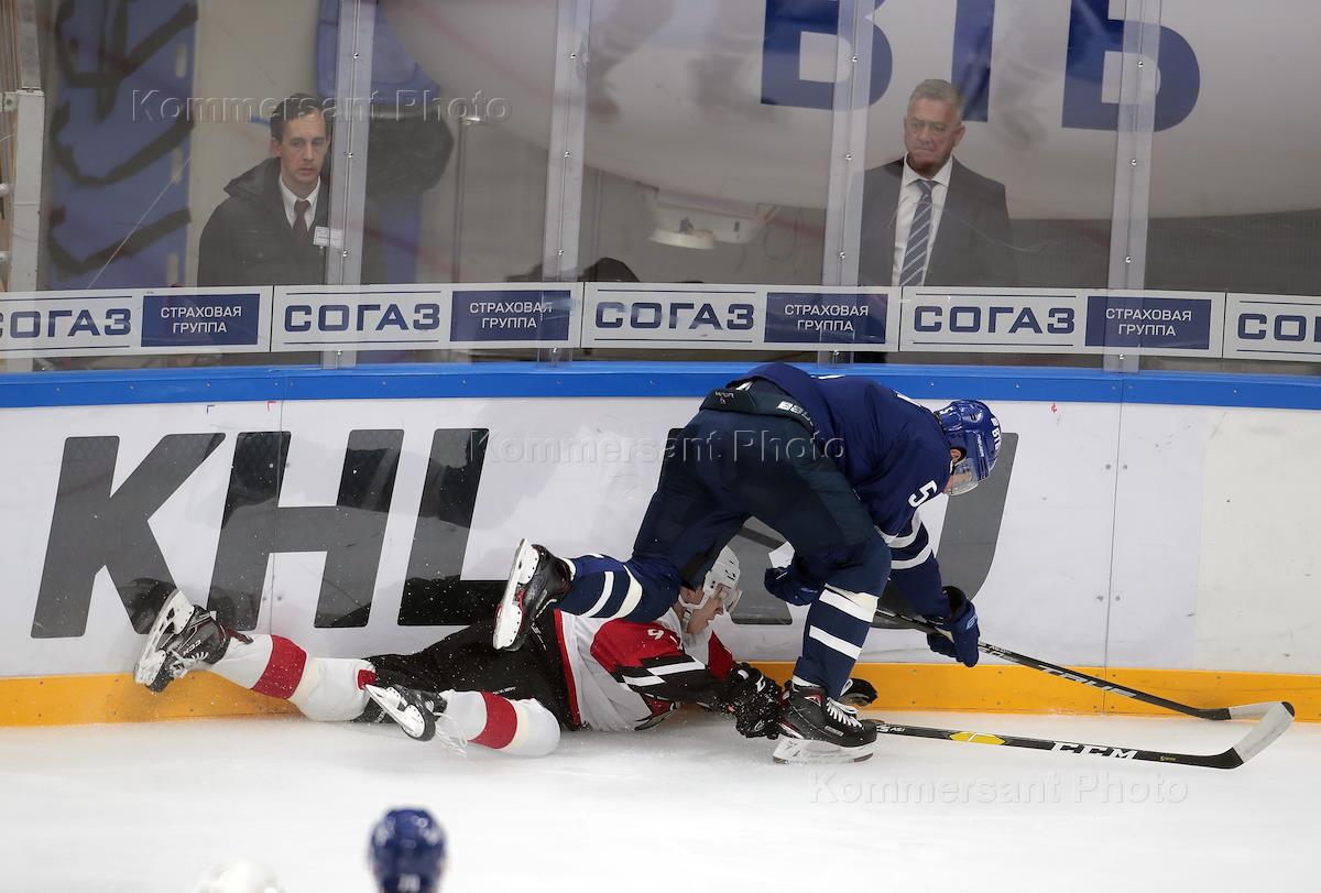 Континентальная хоккейная лига (КХЛ) 2018/2019. Матч между командами ХК "Динамо" (Москва) и ХК "Авангард" (Омск) на арене "ДС Мегаспорт".