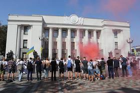 Общество Пикет под зданием Верховной Рады Украины в Киеве, участники которого требуют найти заказчиков нападения на советника мэра Херсона, активистку Екатерину Гандзюк, которую облили серной кислотой 31 июля.