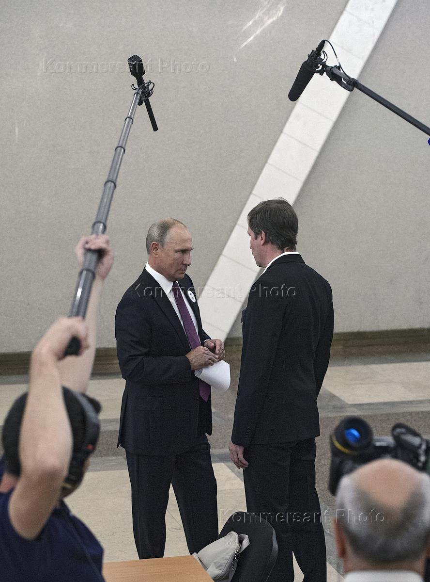 Единый день голосования. Выборы мэра Москвы. Президент России Владимир Путин (справа) и председатель…
