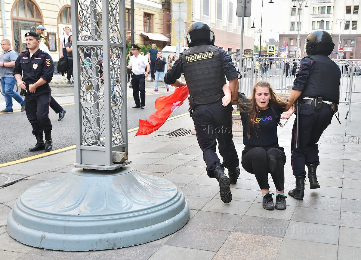 Несанкционированный митинг против пенсионной реформы. Участники митинга на улице Большая Дмитровка.