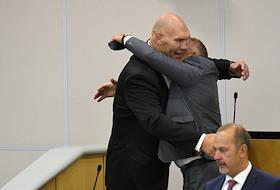 Пленарное заседание Государственной думы (ГД) России. Депутаты ГД России во время исполнения Гимна…