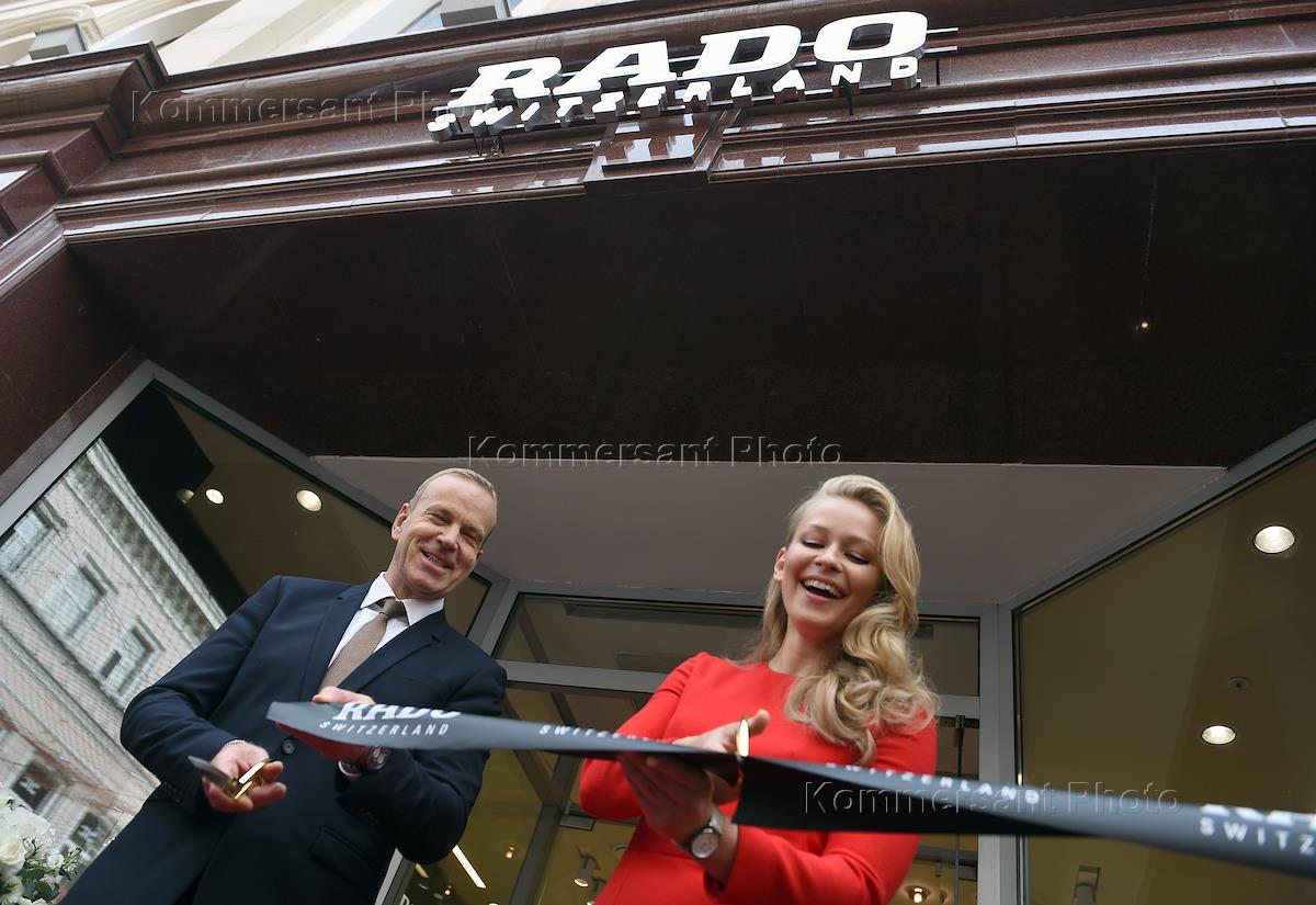 Церемония открытия бутика Rado. Президент компании Rado Матиас Брешан (слева) и актриса Юлия…