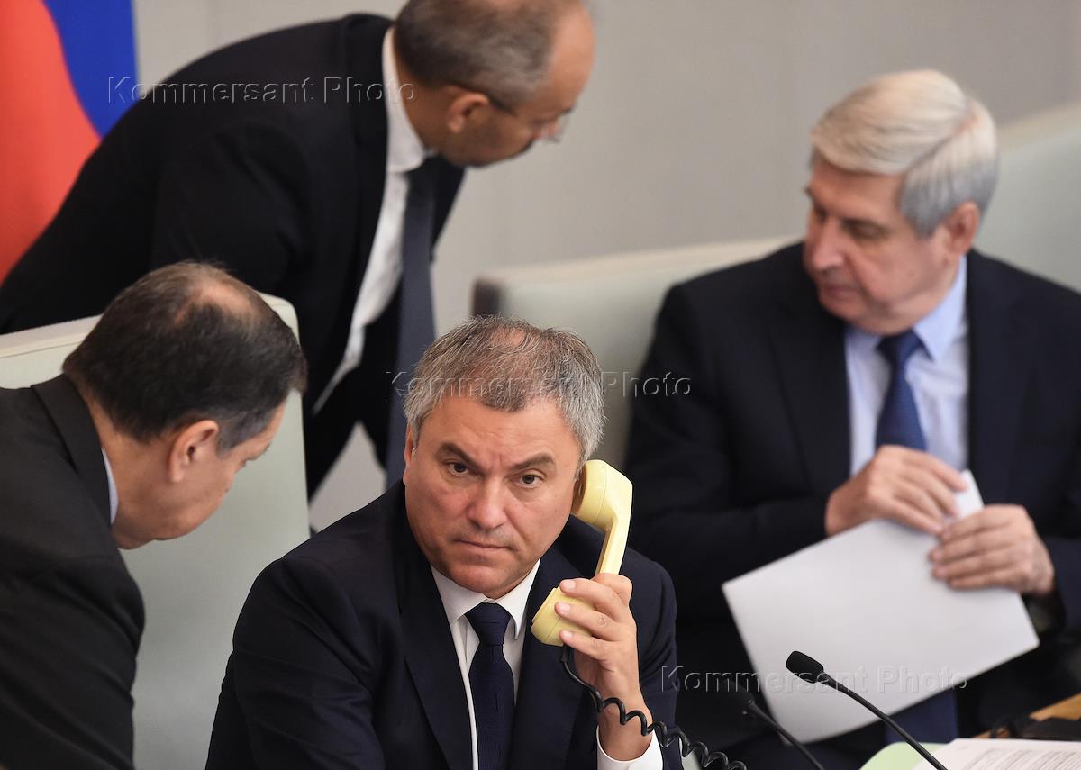 Пленарное заседание Государственной думы (ГД) России. Слева направо: председатель комитета ГД России…
