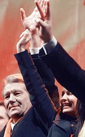 Повторные выборы президента Украины. Кандидат от оппозиции Виктор Ющенко (слева) и представитель…