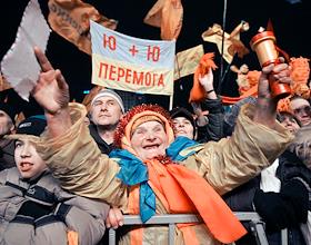 Повторные выборы президента Украины. Митинг сторонников оппозиции, которые празднуют победу своего…