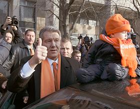 Повторные выборы президента на Украине. Кандидат от оппозиции Виктор Ющенко после голосования.
