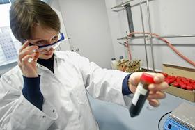 Сотрудница лаборатории Научного центра исследований и разработок нефтяной компании "ЮКОС" берет…