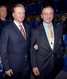Президент Олимпийского комитета России Леонид Тягачев (слева) и олимпийский чемпион по фигурному…
