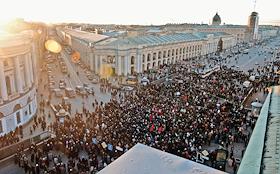 Митинг пенсионеров против монетизации льгот на углу Невского проспекта и Садовой улицы.