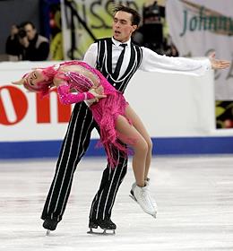 Канадские фигуристы Мари-Франц Дюбраил и Патрик Лаузон во время произвольной программы в танцах на…