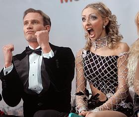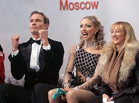 Российские фигуристы Татьяна Навка и Роман Костомаров после выступления в произвольной программе в…