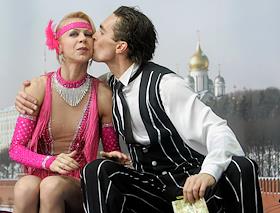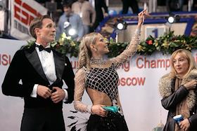 Российские фигуристы Татьяна Навка и Роман Костомаров во время награждения победителей среди…