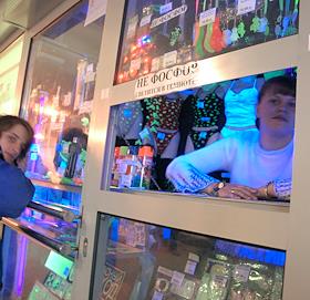 Торговая палатка по продаже товаров с фосфорными рисунками в подземном переходе на Кутузовском…