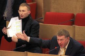 Лидеры Либерально-демократической партии России Лебедев Игорь (слева) и Владимир Жириновский …