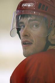 Хоккеист Павел Дацюк во время тренировки российской сборной по хоккею в Красногорске.