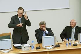Бывшие президенты США Джордж Буш - старший (слева), СССР Михаил Горбачев (справа) и ректор МГИМО…