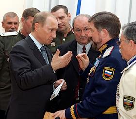 Президент России Владимир Путин (в центре) на встрече с атаманами войсковых казачьих обществ.
