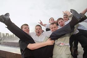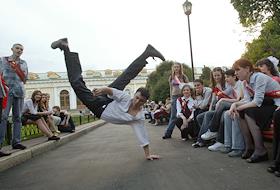 Выпускники средних школ гуляют в Александровском саду.