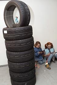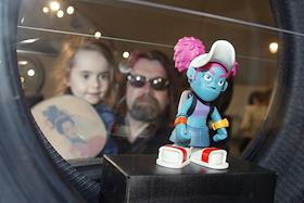 Посетители на выставке Гонконгских дизайнерских игрушек URBAN VINYL. Выставка в мансарде…
