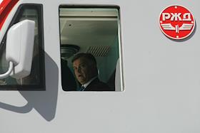 Президент ОАО "Российские железные дороги" (РЖД) Владимир Якунин во время посещения испытательного…