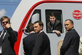 Президент России Владимир Путин (второй справа), президент ОАО "Российские железные дороги" (РЖД)…