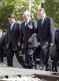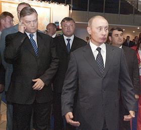 Министр транспорта и связи России Игорь Левитин (справа), Президент России Владимир Путин (в центре)…