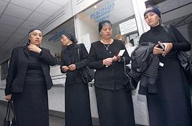 Группа матерей Беслана во главе с Сусанной Дудиевой перед вылетом из владикавказского аэропорта в…