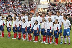 Сборная России по футболу перед началом матча отборочного цикла Чемпионата мира 2006 года со сборной…