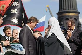 Патриарх Московский и всея Руси Алексий II (слева) и министр России по связи и информатизации Леонид…
