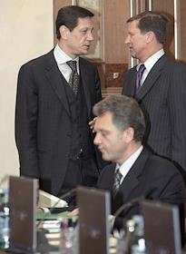 Председатель правления РАО "ЕЭС России" Анатолий Чубайс (слева) и его заместитель Сергей Дубинин…