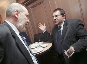 Президент фонда "ИНДЕМ" Георгий Сатаров (слева) и секретарь президиума политсовета "Союз правых сил"…